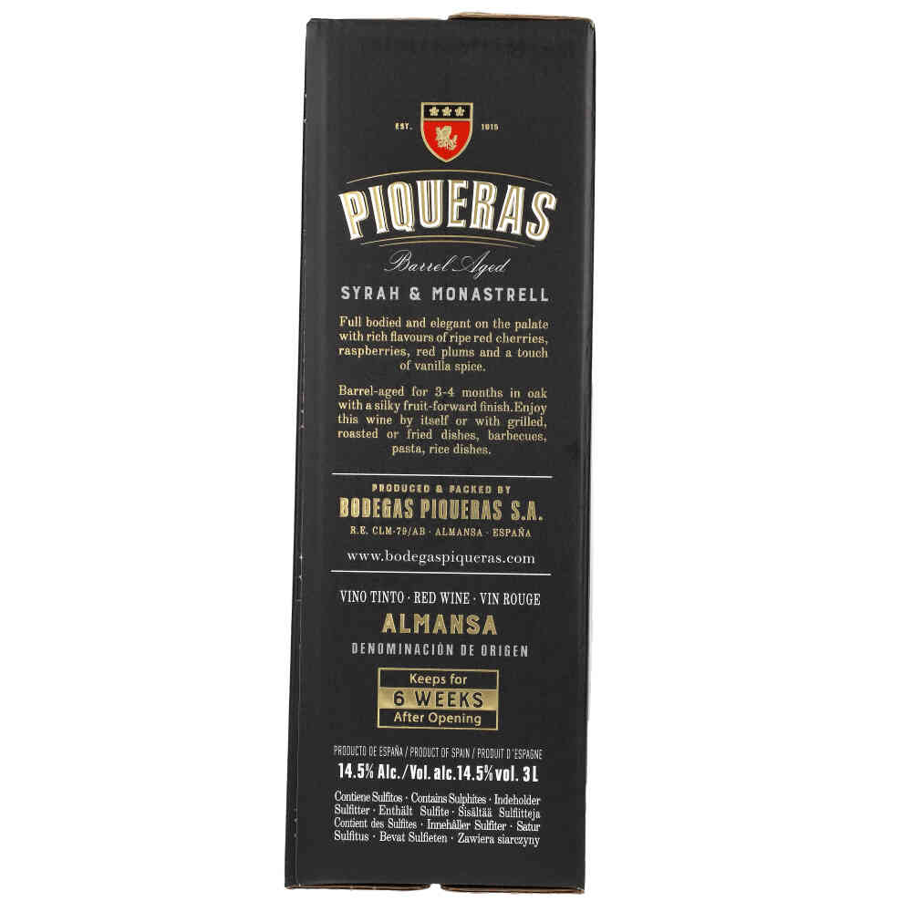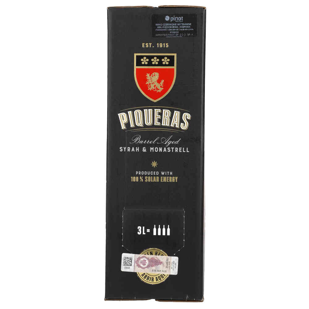 Odkryj bogactwo i złożoność Piqueras Red, wina o wyrazistym charakterze, które łączy w sobie dwie doskonałe odmiany winogron: 50% Syrah i 50% Monastrell. Zabutelkowane z mocą 14,5% alkoholu, to czerwone wino o pełnym, wytrawnym smaku z regionu Almansa w Hiszpanii, zachwyca każdego miłośnika win intensywnymi aromatami i głębokim smakiem.