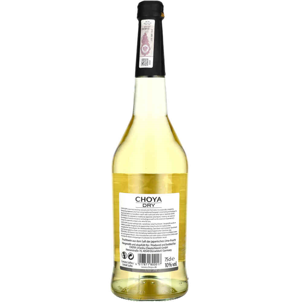 CHOYA DRY Wino o przyjemnym śliwkowym aromacie i jasnej, słomkowej barwie. W smaku jest delikatnie słodkie i aksamitne. Wino Choya ma wiele właściwości zdrowotnych. Oczyszcza organizm z toksyn. Usuwa zmęczenie i zwalcza bezsenność. Jest uważane za skarb kraju Kwitnącej Wiśni. Jest bogate w witaminę C i kwasy owocowe. Doskonale pasuje do dań kuchni japońskiej, szczególnie sushi.