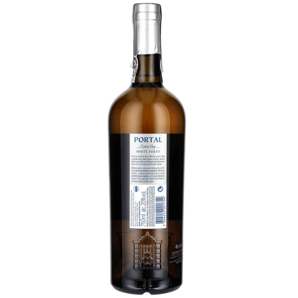 Porto Portal Extra Dry White - reprezentuje najbardziej wytrawną kategorię białego porto. Lśniąca, słomkowa barwa i wspaniałe aromaty cytryn i orzechów. Dobrze wyważone, owocowe w ustach, z lekko wyczuwalną słodyczą. Eleganckie gorzkie zakończenie. Podawać schłodzone do 10 stopni jako aperitif lub jako koktajl z tonikiem (50/50), miętą, cytryną i lodem.