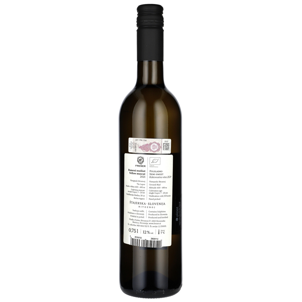 Zimna maceracja trwa do 20 godzin, a fermentacja zachodzi w stalowych kadziach. Dojrzewa 5 miesięcy na osadzie. Wino białe, półsłodkie, oczarowuje delikatnymi cytrynowymi nutami i dłuższym muszkatowym finiszem. W ustach czuć słodkie i lekkie aromaty z przyjemną kwasowością, która dodaje świeżości. Świetnie komponuje się z deserami owocowymi, ciastami i kremowymi tortami.