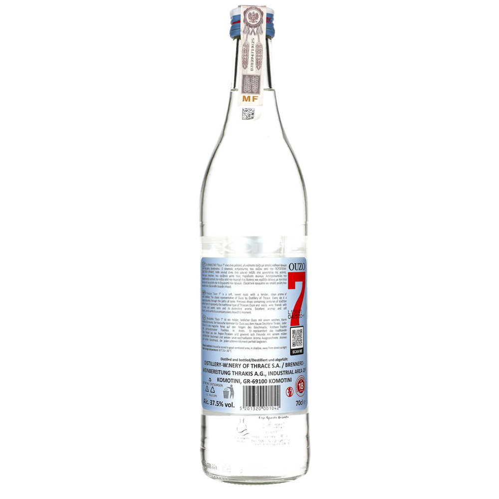 OUZO 7 37,5% 0,7 L to pochodzący ze słonecznej Grecji alkohol o
