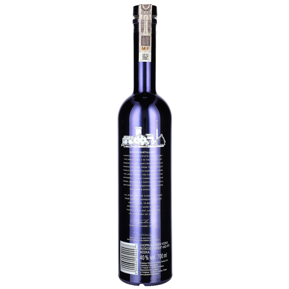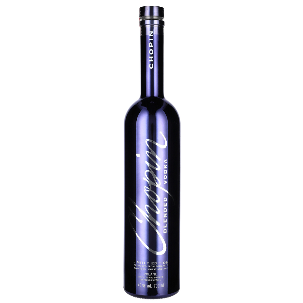 Chopin Blended Indigo ma zawartość alkoholu wynoszącą 40% i dostępny jest w eleganckiej butelce o pojemności 700 ml, której głęboki, indygo kolor symbolizuje bogactwo i głębię smaku. Butelka prezentuje się wyjątkowo i przyciąga wzrok, co czyni ją doskonałym wyborem na prezent lub do specjalnych okazji.