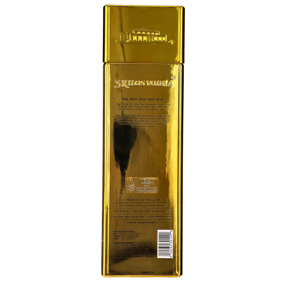 3 Kilos Gold Vodka to luksusowa wódka premium produkowana z ręcznie wyselekcjonowanej holenderskiej pszenicy oraz krystalicznie czystej wody. Pięciokrotna destylacja zapewnia jej wyjątkowo gładki, aksamitny smak i czysty charakter.